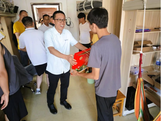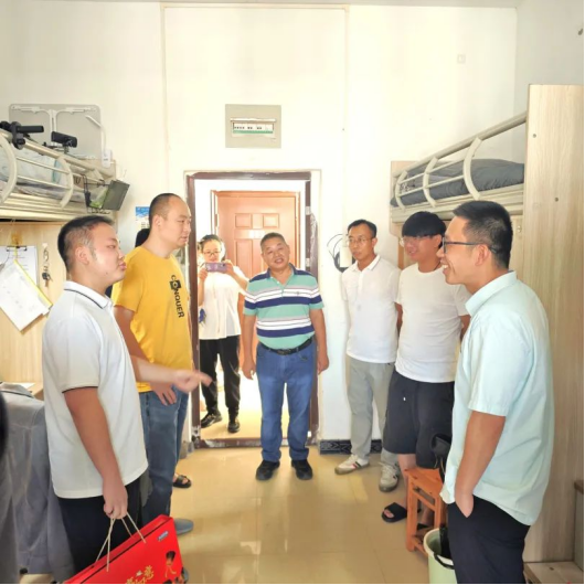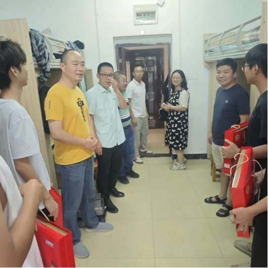 2024年9月14日,公司党总支书记赵春哲、经理冯玉明、党总支副书记廖红富、副经理李洪兵、副经理代祥光以及全体辅导员走访了公司部分本科及研究生新生宿舍,为同学们送上节日祝福。