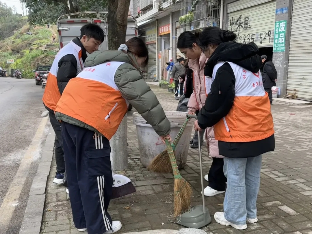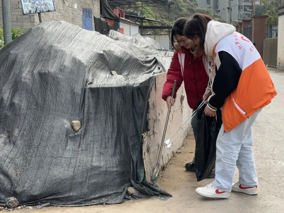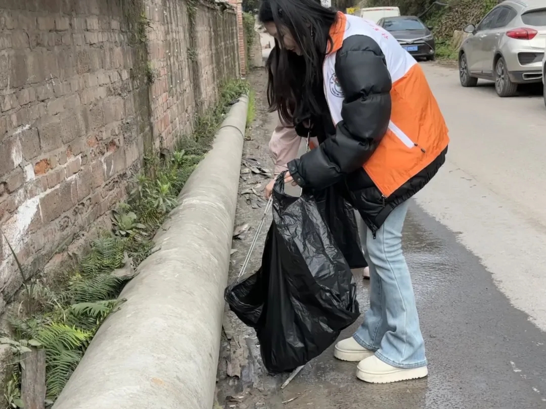 志愿者们从街道两端分头行动,仔细清扫着马路边的烟头和塑料袋等垃圾,并帮助清理田地里的杂物。