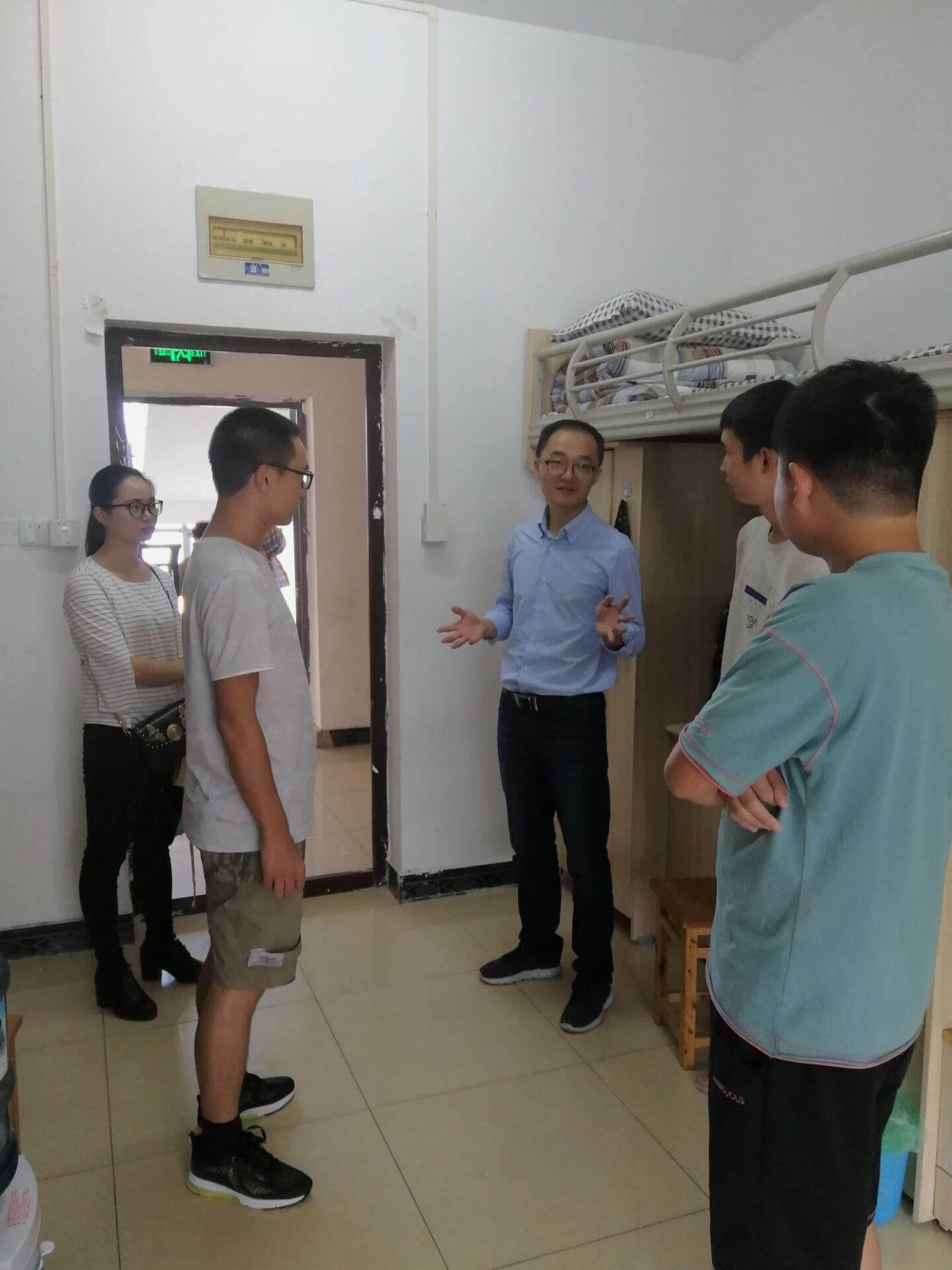 近日,公司党总支副书记刘文菘带领辅导员走访了员工寝室,开展拉网式大检查、大排查。深入寝室开展安全教育,规范用水用电,禁止私拉乱接电线和使用大功率用电器。走访中还不断提醒员工文明上网,不发表不转发不当言论,积极开展健康有益的寝室文体活动。