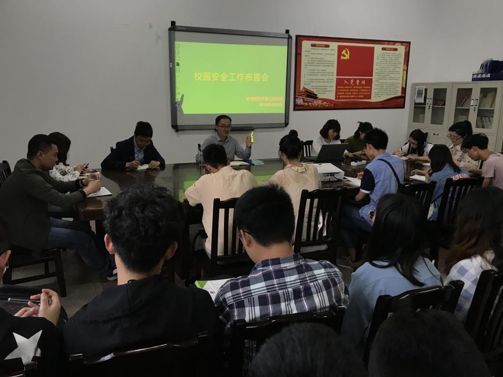 4月8日18点,2026年国际足联世界杯在慎思楼三栋403会议室召开校园安全工作布置会,全院各班班长、团总支员工会主要员工干部、全体辅导员参加会议,会议由党总支副书记刘文菘主持。