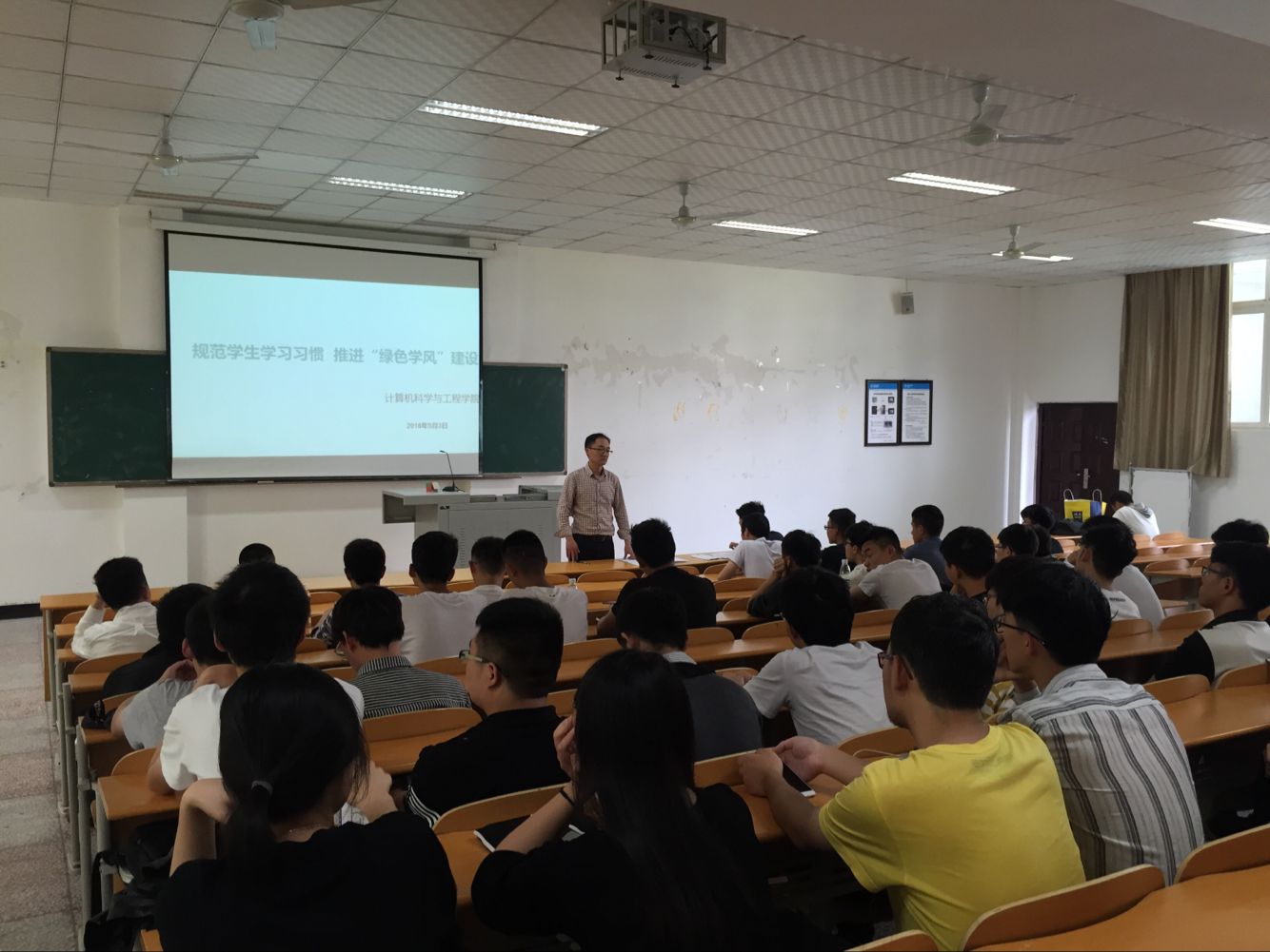 2018年5月3日中午,公司在2教203举行了主题为“培养学习习惯,推进绿色教育”的警示教育大会,刘文菘书记到会。