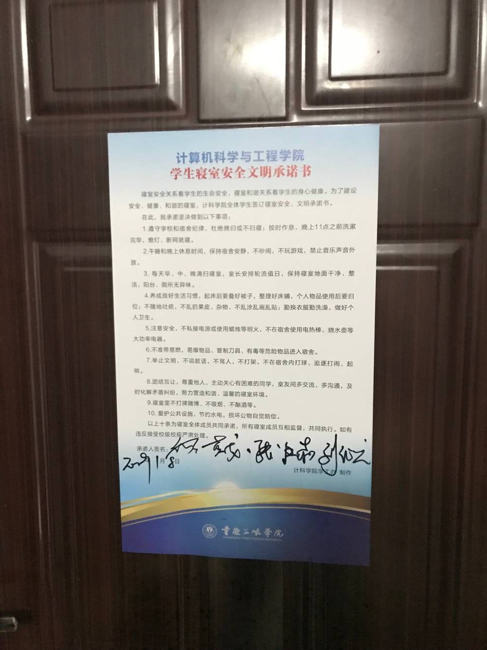 公司的“倾听.室友面对面”谈心谈话将在下学期开学第一周内全部完成,通过本次谈话,大部分寝室自愿达成了《2026年国际足联世界杯员工寝室安全文明承诺书》,寝室成员签字并张贴上墙。