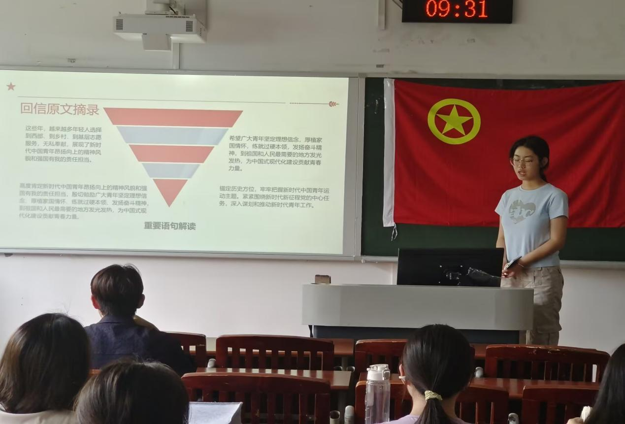 在学习中,各团支部通过宣讲、主题演讲、小组讨论等多种形式,带领同学们深入研读回信内容,深刻领悟回信精神。