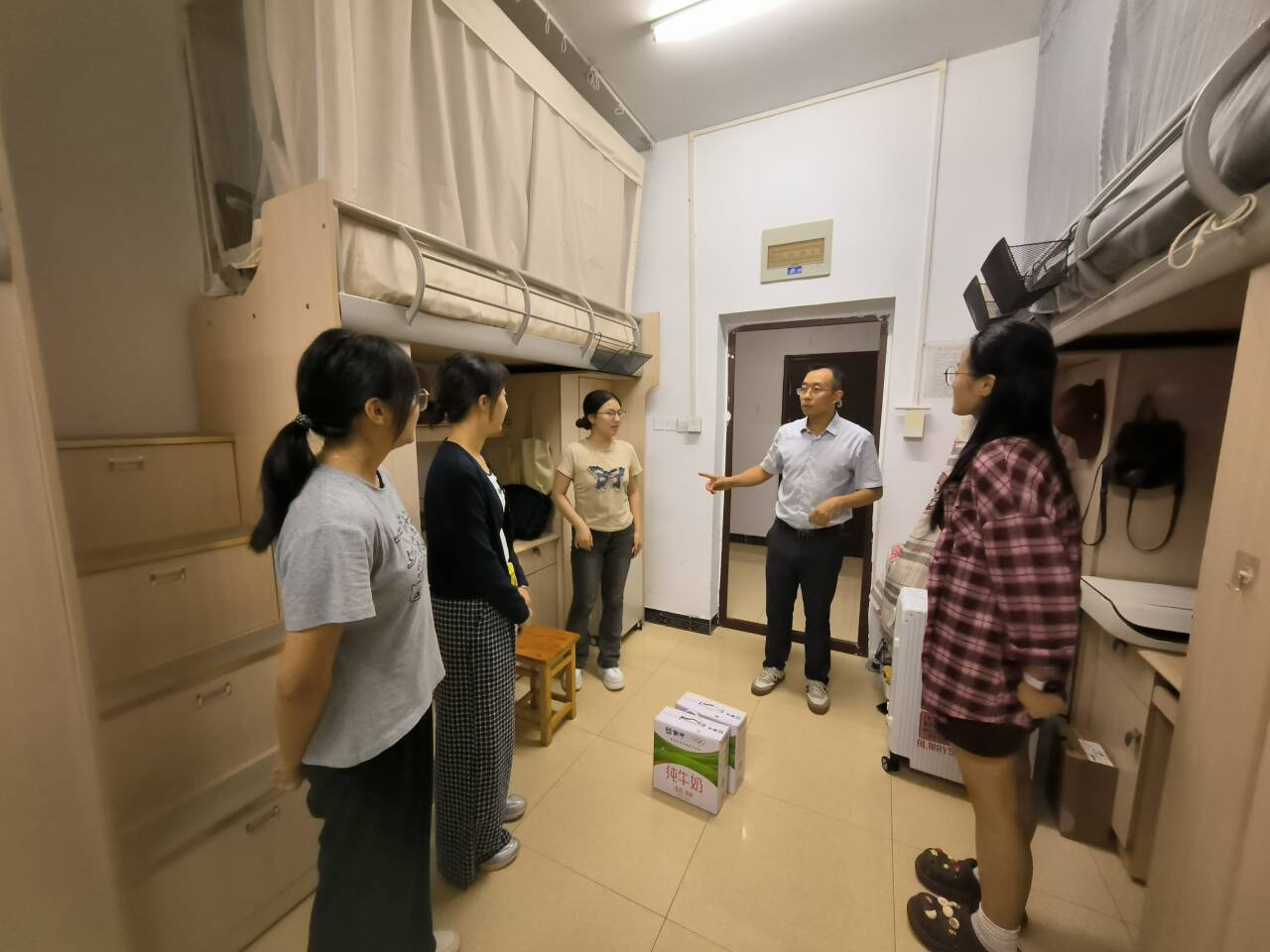 中秋佳节来临之际,公司领导班子在9月29日带领全体辅导员走进寝室和教室,对公司家庭经济困难员工、2025级新生等进行了走访慰问。