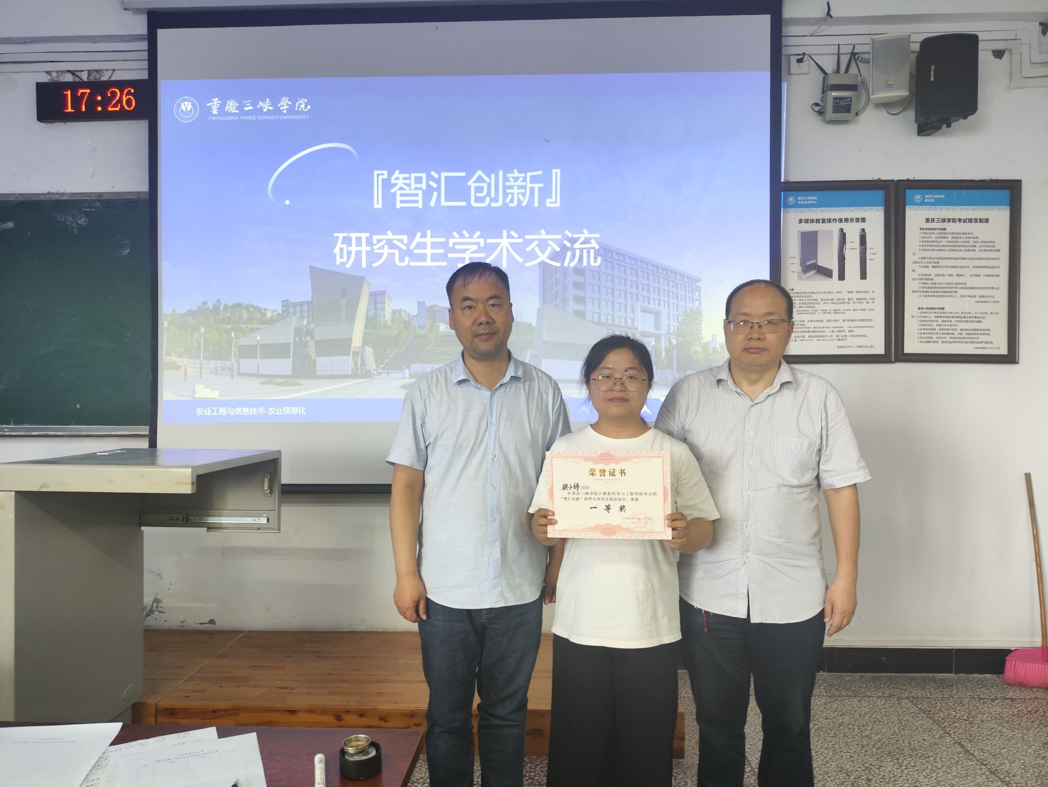 现场对表现优秀的汇报者进行表彰,鼓励大家持续深耕科研方向,积极参与后续竞赛与交流活动。本次活动共评选出一等奖1名,由导师现场颁发证书。